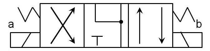 Distributeur tout ou rien (ON/OFF), plan de pose NG6, 4 ORIFICES 3 POSITIONS, tension d'alimentation 240VAC Livré sans connecteur. Schéma de tiroir : CROISE/PARALLELE, A ET B AU T