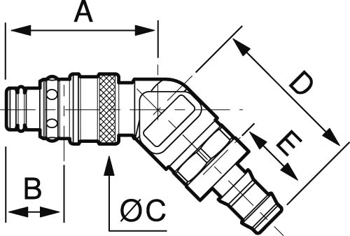 fiche coudée a 135° PREVOST CPI 086810CNRO , diamètre de passage 8 mm pour tuyau auto serreur Ø int. = 10 mm